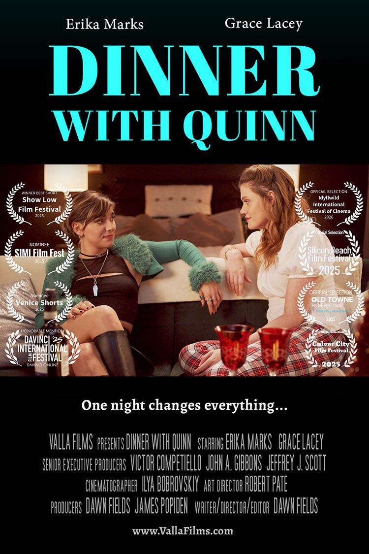 Dinner With Quinn is a raw and intimate short film by award-winning writer/director Dawn Fields (Fragile Storm-starring Lance Henriksen) about a young woman who seemingly has everything who drops a devastating bombshell on her sister over dinner.