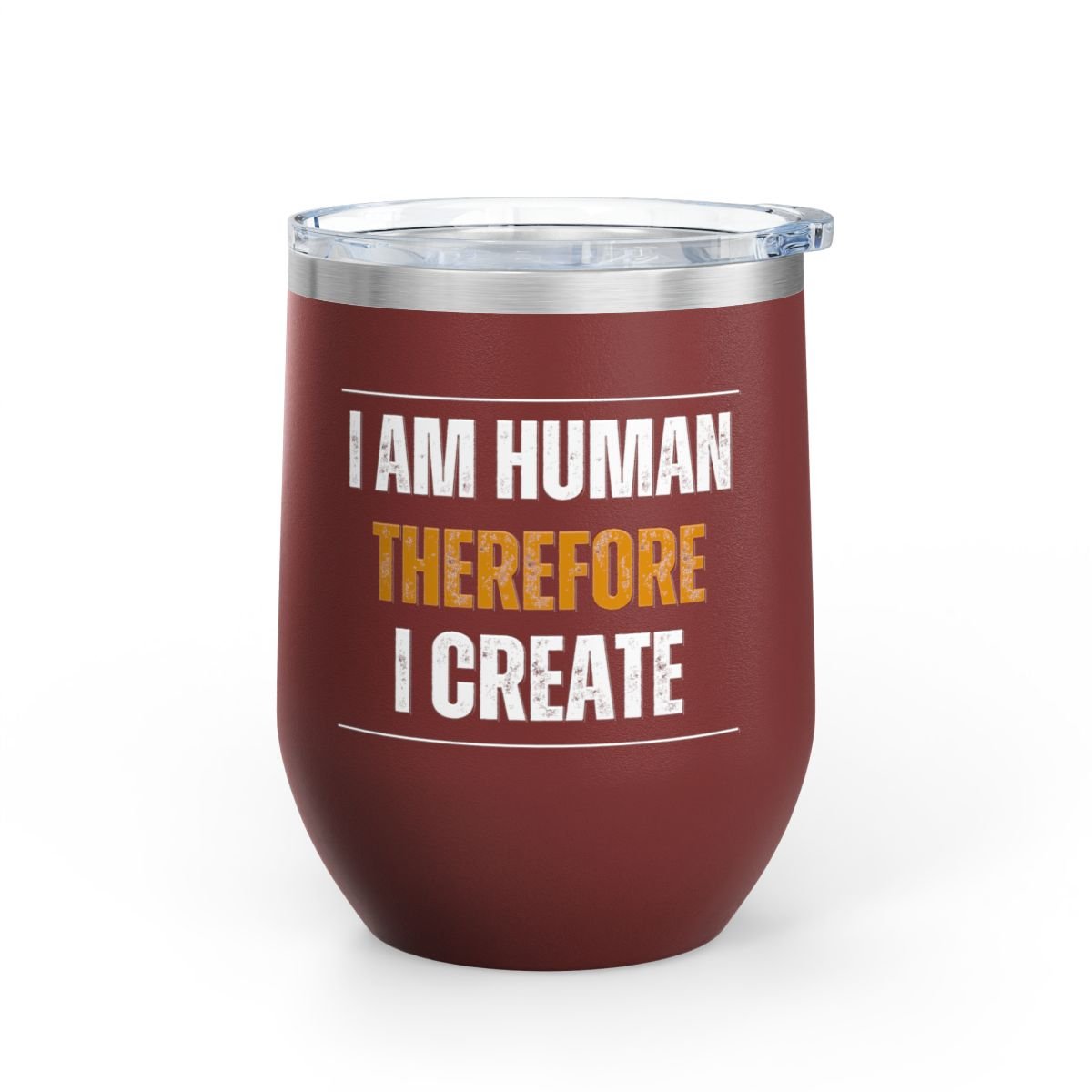 A beautifully crafted 12 oz Wine Tumbler, perfect for sipping your favorite beverages in style with your sister and best friend! It features the empowering message “I am Human Therefore I Create”.